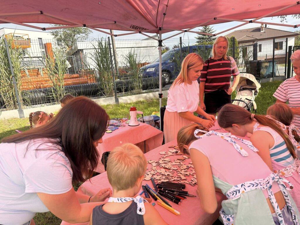 Niezwykle dużo radości wniosły również animacje przygotowane przez Figle Migle – animacje i warsztaty. Kreatywne zabawy, konkursy i tańce angażowały nie tylko dzieci, ale również rodziców, którzy chętnie dołączali do wspólnej zabawy. Kolejki do malowania buziek zdawały się nie kończyć, a efekty pracy animatorów zachwycały każdego – mali superbohaterowie, wróżki, tygryski i inne bajkowe postacie biegały później po całym festynie. Wspaniałą pamiątką były również własnoręcznie wykonane magnesy i breloczki – prawdziwe małe dzieła sztuki, które dzieci mogły zabrać do domów.