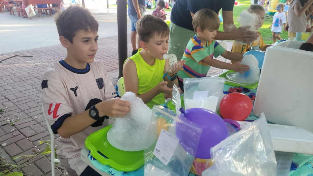Program atrakcji przygotowany na ten dzień zachwycił zarówno najmłodszych, jak i dorosłych. Ogromne emocje wzbudziły warsztaty Biologiczny kuferek, gdzie dzieci mogły spróbować swoich sił w eksperymentach chemicznych. Radość na ich twarzach, gdy własnoręcznie tworzyły kolorowe kule do kąpieli czy bawiły się balonami wypełnionymi suchym lodem – bezcenna! To była nie tylko świetna zabawa, ale też nauka poprzez doświadczenie.