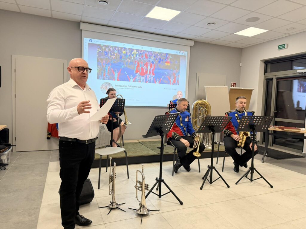Podczas spotkania opowiedział o swojej niezwykłej muzycznej przygodzie – o tym, jak wszystko się zaczęło, skąd wzięła się jego pasja do muzyki oraz jak wygląda jego historia związana ze Swarzędzką Orkiestrą Dętą. Była to niezwykle inspirująca opowieść o wytrwałości, rozwijaniu talentu i o tym, jak muzyka potrafi łączyć ludzi.