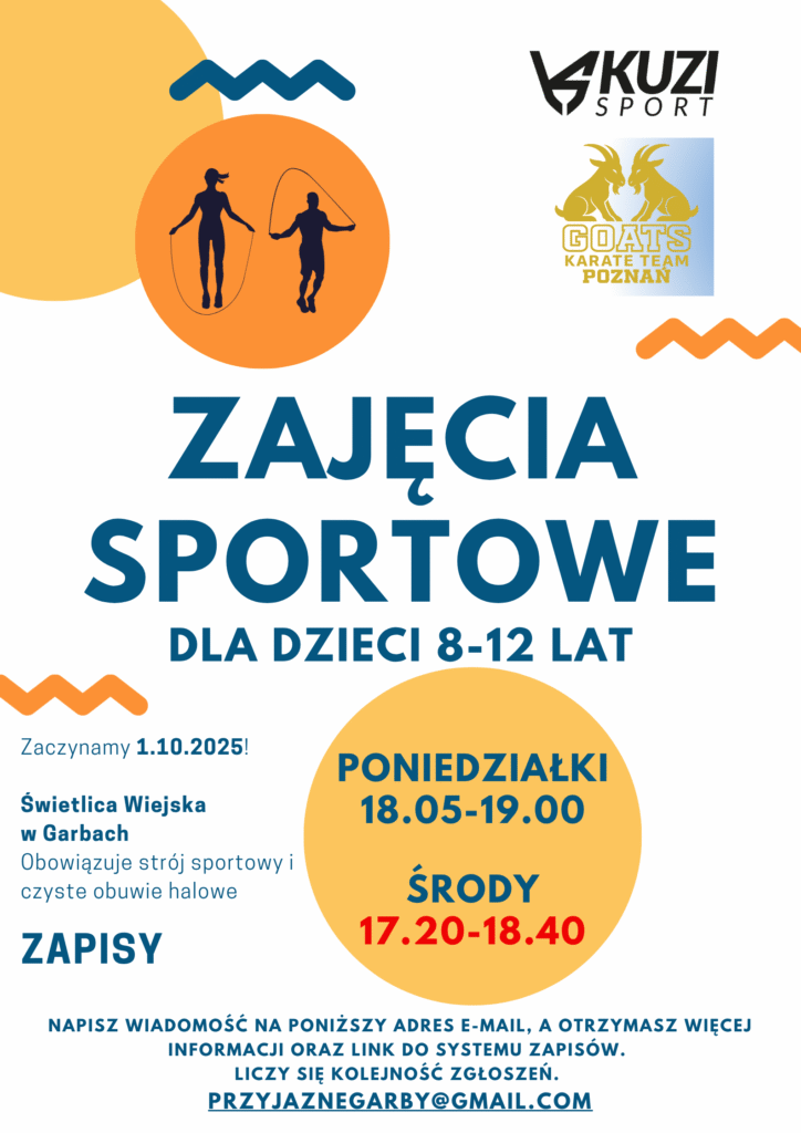 ✍️ Zapisy: u Pani Sołtys lub przez Messenger świetlicy w Garbach.