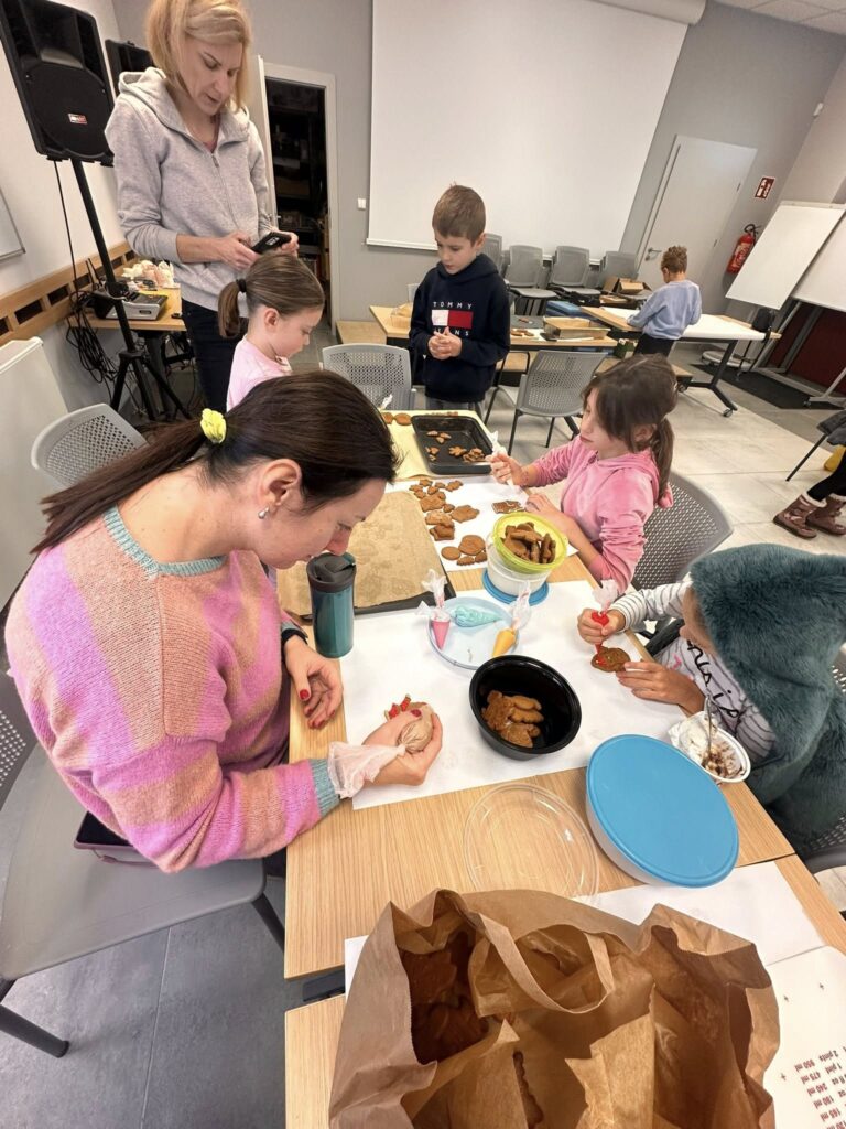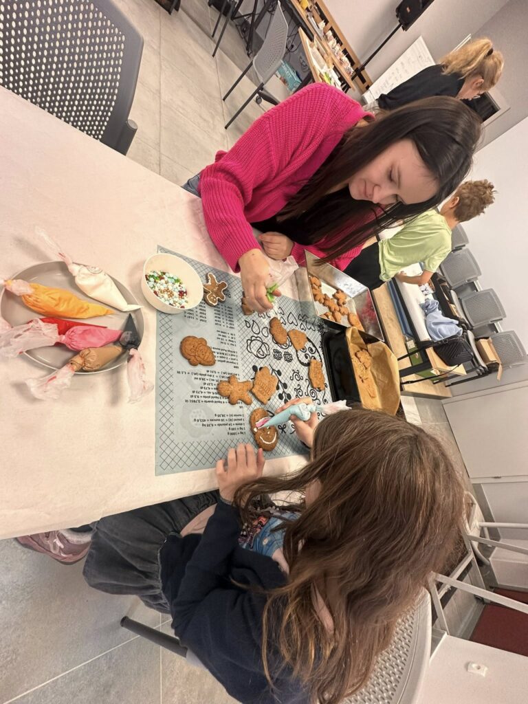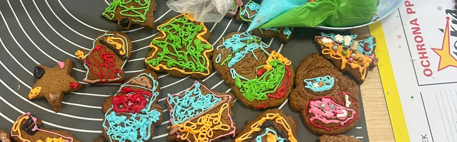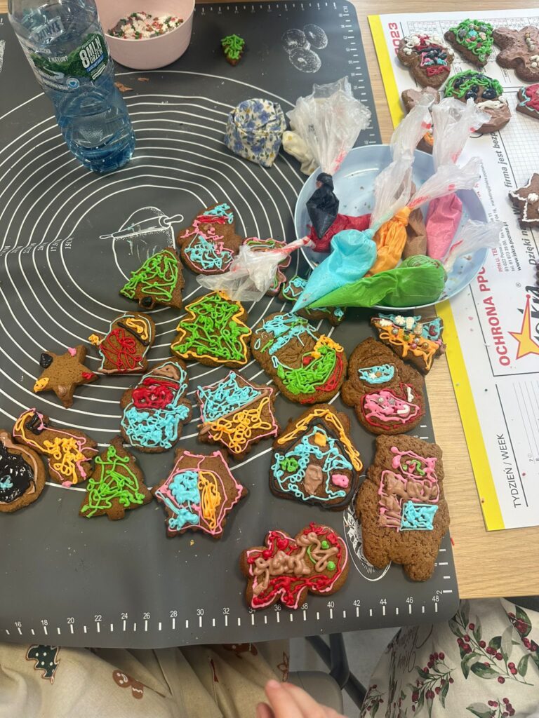 Nasze warsztaty pieczenia pierniczków zmieniły się w prawdziwą pracownię świątecznych mistrzów. Powstawały dziesiątki małych arcydzieł: gwiazdki, choinki, serduszka, renifery, a nawet kilka absolutnie zaskakujących, fantazyjnych tworów, które wyglądały jak wyjęte prosto z baśni.